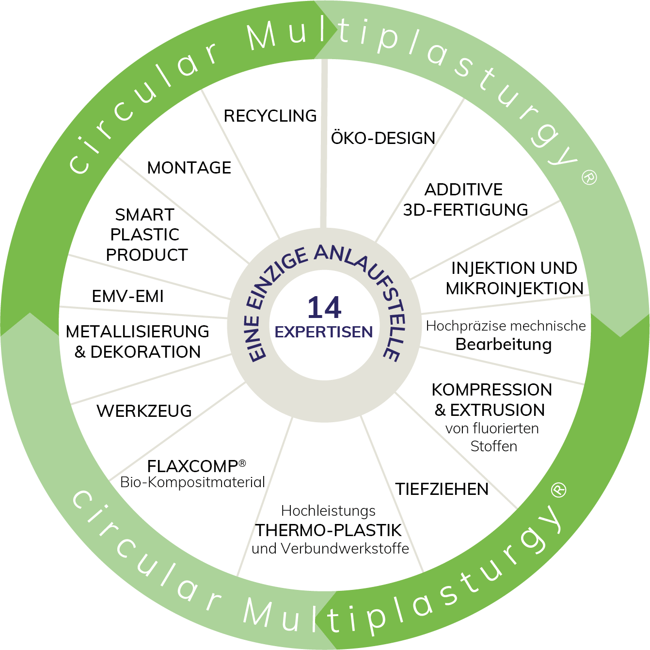 Unser Angebot circular Multiplasturgy®, ein einzigartiges Angebot unserer 15 Kompetenzzentren, ermöglicht es uns, die vielfältigen Bedürfnisse insbesondere der Automobilbranche zu erfüllen, wo Innovation und Leistung aufeinandertreffen, um die Zukunft der Mobilität zu gestalten.